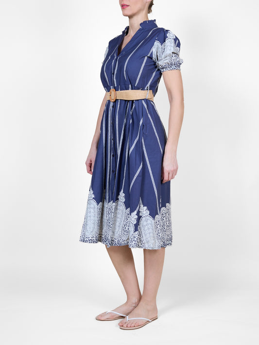Palm Button-Down Midi Shirt Dress with Woven Belt