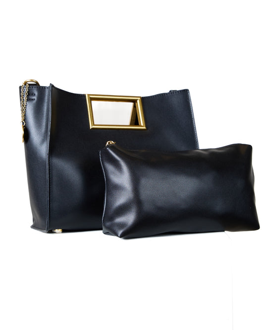 Black Leather Bag with Gold Handle and Removable Straps