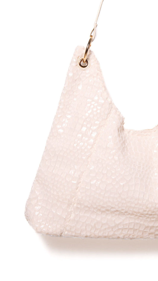 Beige Oversized Faux Fur Tote Bag with Sequin Straps & Matching Pouch