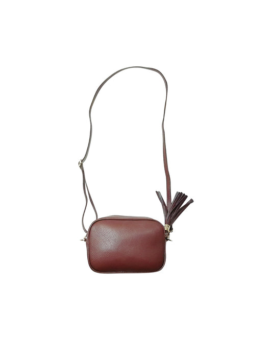Brown Pebbled Leather Crossbody Bag with Tassel Detail