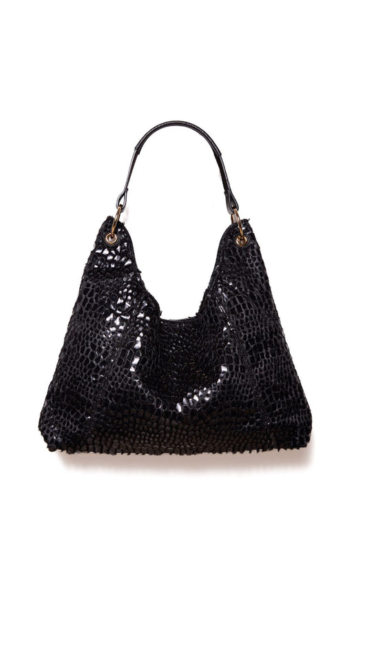 Black Oversized Faux Fur Tote Bag with Sequin Straps & Matching Pouch