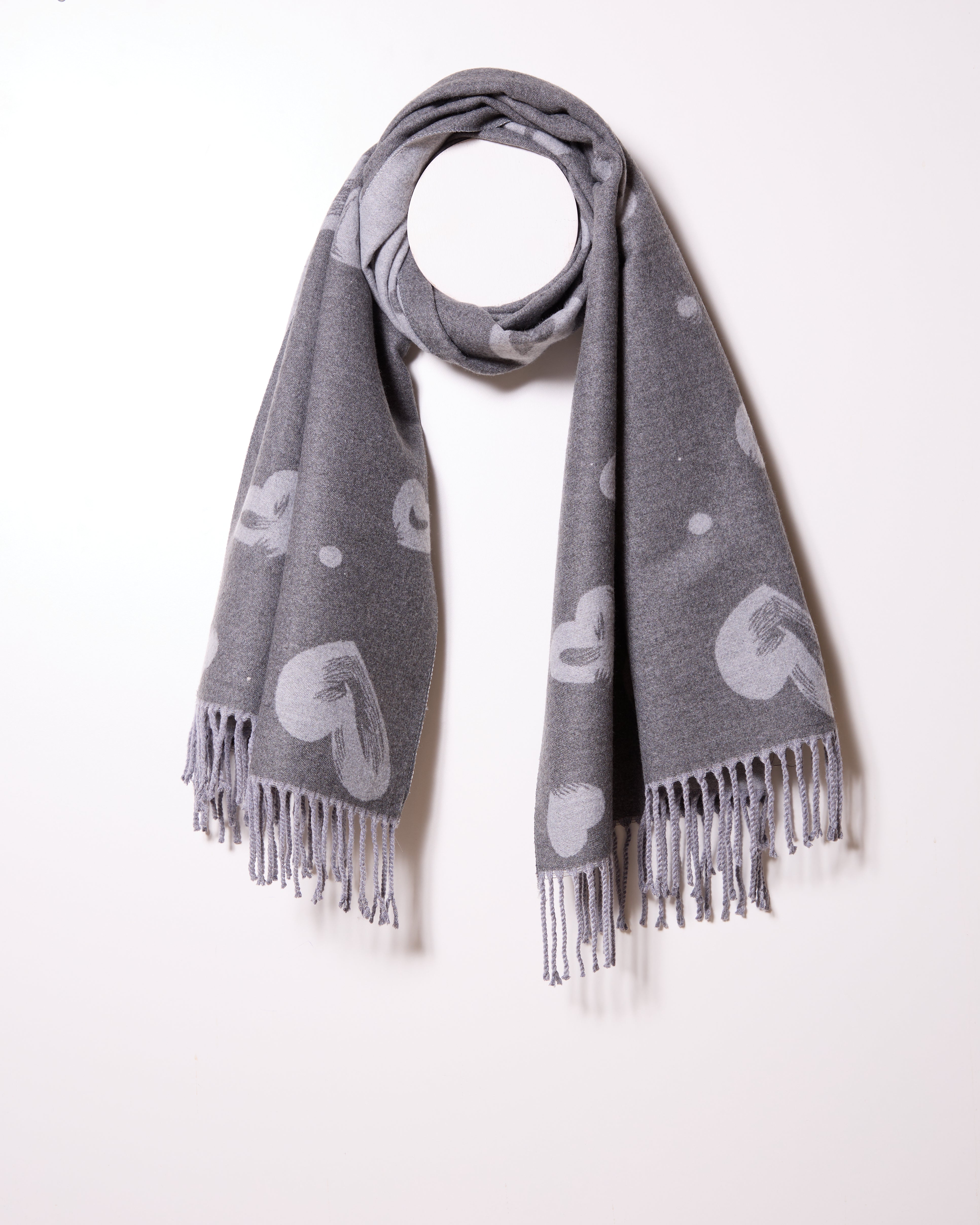 Light Grey Distressed Heart Reverse Colour Scarf