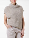 Beige Cowl Neck Sleeveless Chennille Vest