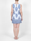 This mid-length dress features a stunning white background adorned with a large paisley print in midnight blue. The bold pattern adds an element of sophistication to the classic silhouette, making it perfect for both day and evening events. Comfortable and stylish, it’s an elegant choice for any occasion.