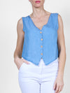Dark Denim Sleeveless Button-Front Vest