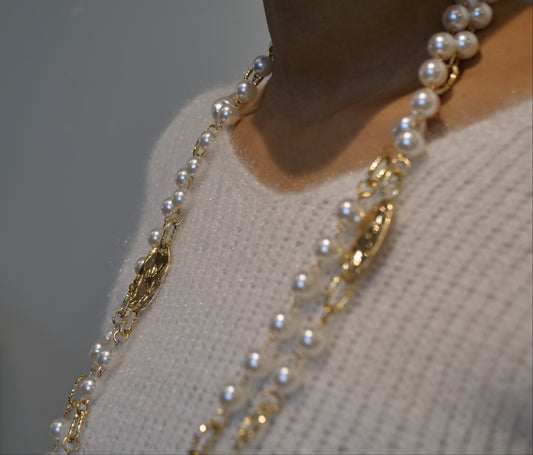 Gold Pearl Chain Necklace with Mixed Beads