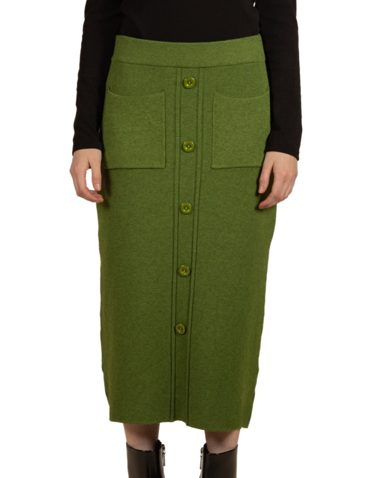Olive Pull On Button Front 2 Pocket Back Slit Skirt