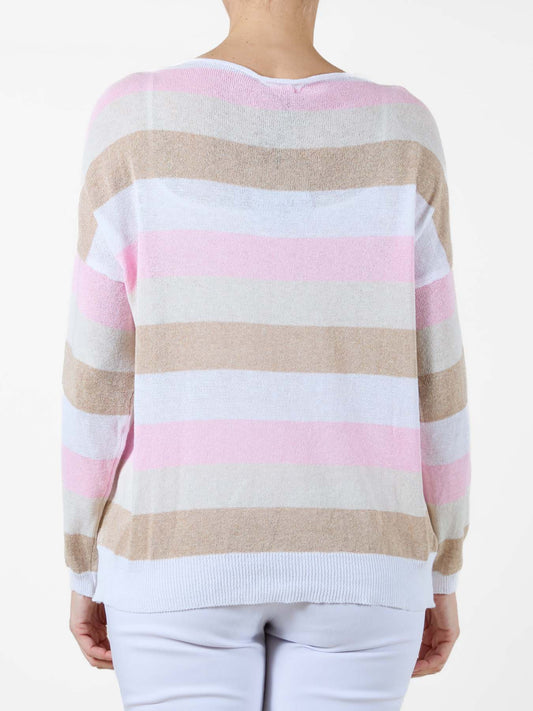 Beige V Neck Multi Lurex Heart Long Sleeve