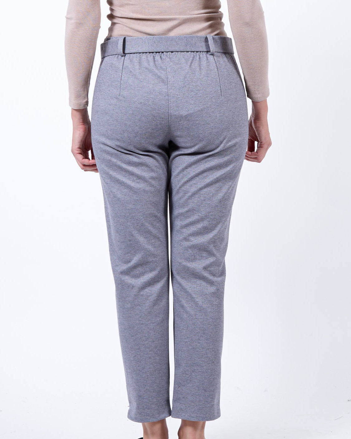 Pantalon gris en feutre à enfiler avec ceinture au dos