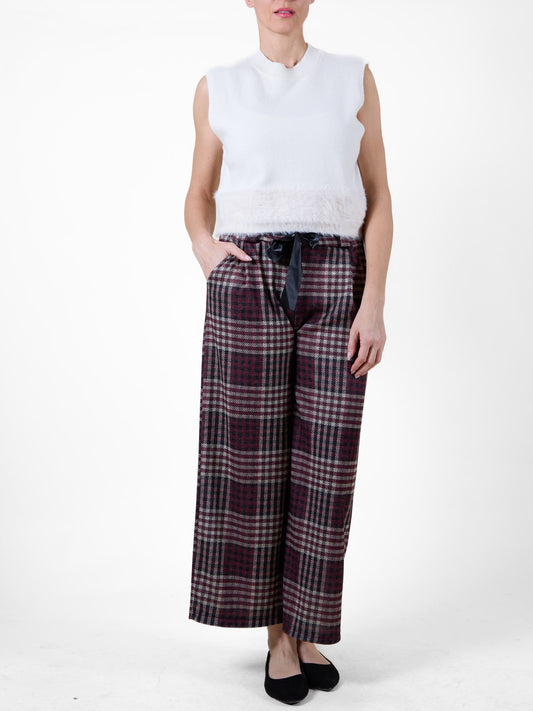 Veste sans manches ivoire à col rond avec ourlet en fausse fourrure