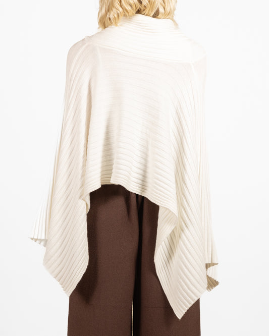 Chandail ivoire à col montant, torsades et épaules tombantes