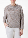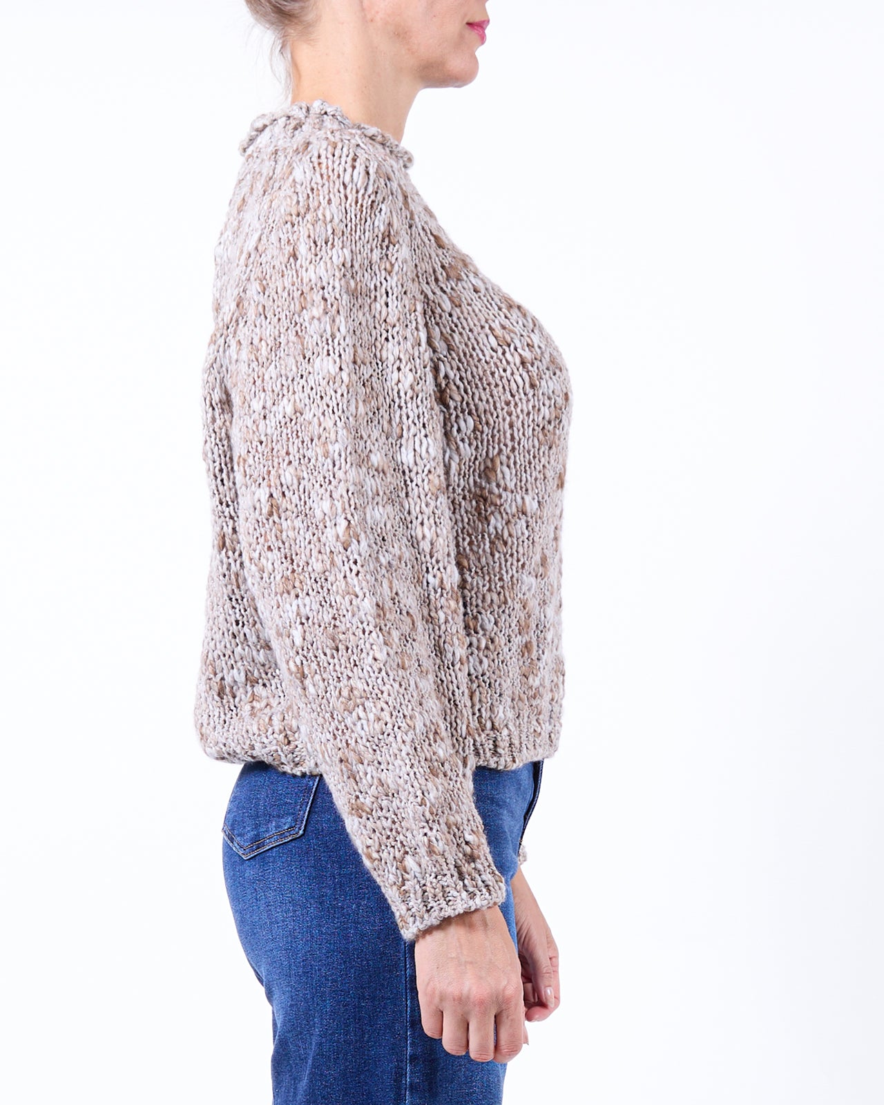 Chandail Beige à Col Montant en Chenille, Tricot Épais